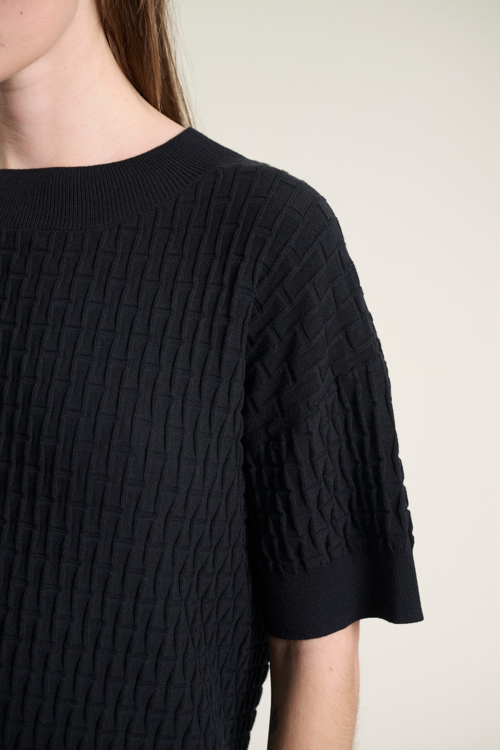 Naibu Rib 3/4 Sleeve Blouse Black 15070-0039
